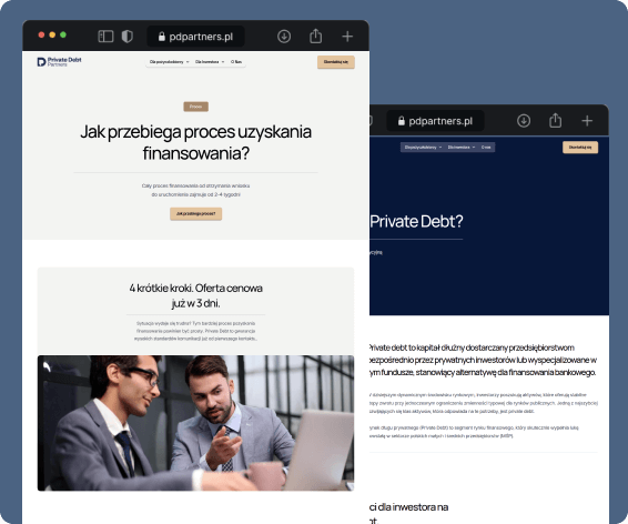 Private Debt Partners miało wcześniej dwie oddzielne strony internetowe - jedną skierowaną do inwestorów, drugą do pożyczkobiorców. Obie zawierały podstawowe informacje, ale przez to, że były zbyt proste i ubogie w treść, wpisywały się w typowy dla branży schemat: dużo ogólnych haseł, mało konkretów.