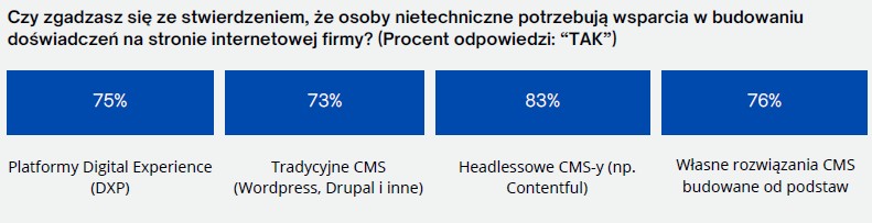 To rozdzielenie prowadzi do sytuacji, w której niemal 81% dyrektorów marketingu odczuwa ograniczenia narzucane przez zespoły IT lub inne grupy, utrudniające swobodne zarządzanie treścią strony.